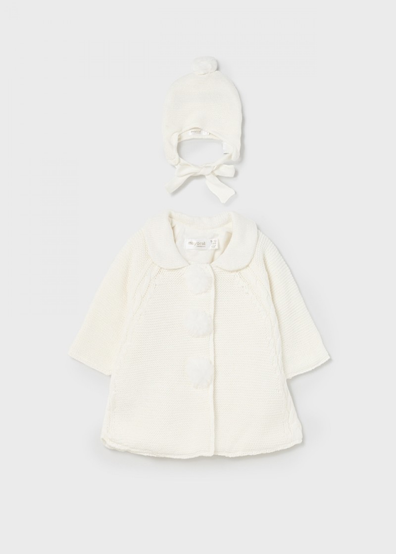 Palton alb tricot cu caciula pentru nou-nascut 2497 MYG08M