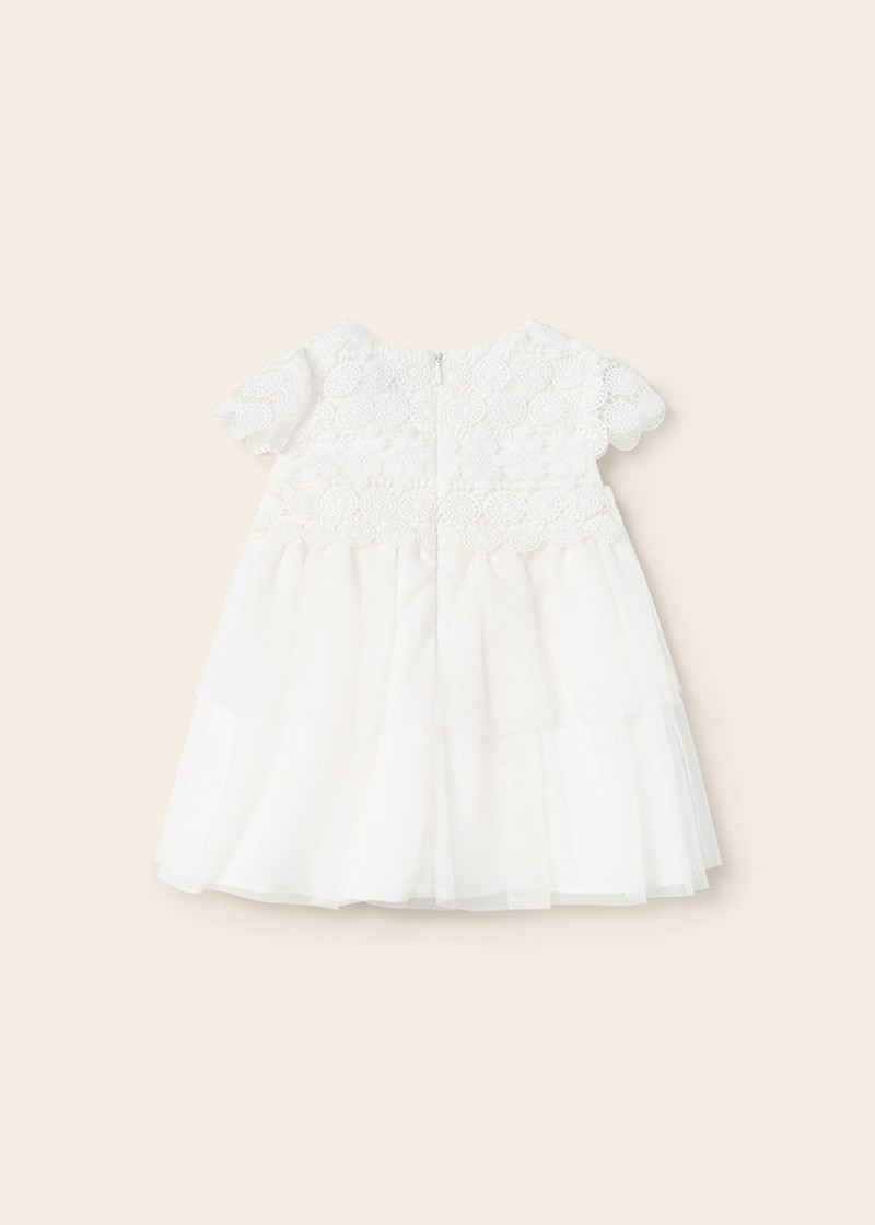 Rochie ivory combinata ghipura si tul pentru bebe MAYORAL 1950 MYR15V