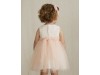 Rochie frumoasă pentru bebeluș din tul cu detalii brodate în partea de sus. Tul cancan pentru a da mai mult volum fustei. Închidere cu nasturi la spate. Chilotei asortati cu rochia care acoperă scutecul.