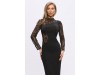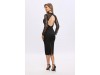 Aceasta rochie neagra este definitia elegantei rafinate, cu un croi care pune in valoare silueta. Manecile lungi sunt realizate integral din dantela delicata, adaugand o nota sofisticata si feminina. Bustul este decorat cu un decupaj in V, fin accesorizat cu insertii de dantela, care confera un aer senzual, dar echilibrat. Spatele este spectaculos decupat, oferind un efect vizual atragator si modern. Rochia imbina perfect elementele clasice cu detalii actuale, fiind ideala pentru evenimente de seara sau ocazii speciale.