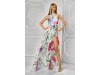 Aceasta rochie lunga este o alegere ideala pentru aparitii rafinate si feminine in sezonul cald. Realizata dintr-un material vaporos, cu imprimeu floral in nuante vibrante de roz, mov si verde pe fond alb, rochia emana prospetime si eleganta. Croiala este lejera si fluida, accentuata de talia marcata si de slitul adanc pe picior, care adauga o nota senzuala si moderna. Partea superioara se inchide la baza gatului, oferind un plus de eleganta si echilibru estetic. Detaliul floral 3D aplicat in talie aduce un accent romantic, completand perfect designul. Este o rochie ideala pentru evenimente de zi, vacante sau petreceri in aer liber. Se asorteaza perfect cu sandale delicate si accesorii fine.
