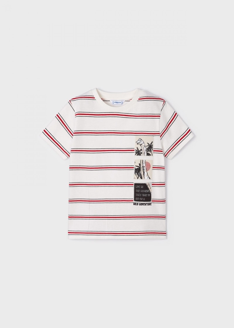 Tricou dungi rosii cu motibe brodate din bumbac sustenabil pentru baiat MAYORAL 3017 MYBL31V